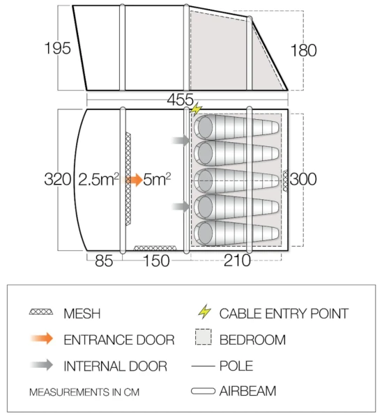 - Inflatable AirBeam® Structure – With 10 years’ experience in AirBeam® technology, we are the leaders in pole free pitching. AirBeam® technology ensures your tent is erect within a matter of minutes, creating a strong and rigid structure allowing you peace of mid and more time to enjoy your holiday (Supplied with double action pump)