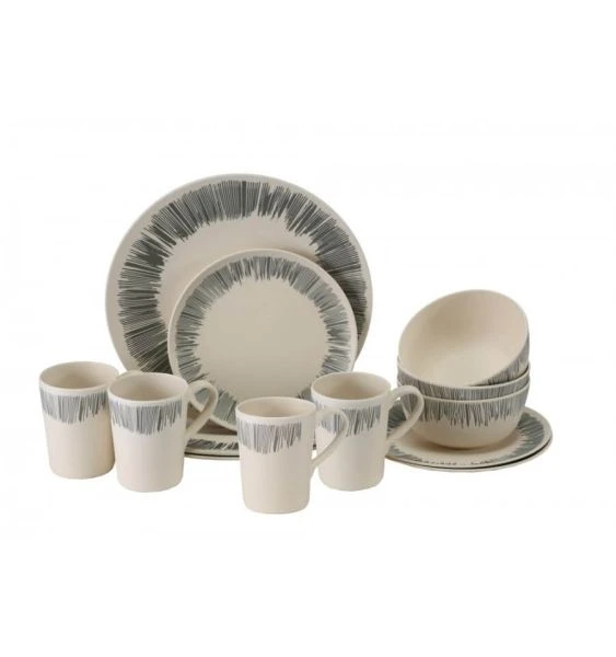 Vango Bamboo 4 Person Set in Stripe. This highly sustainable and eco-friendly tableware set is lightweight and durable and meets European REACH standards. As well as being food safe FDA & LFGB this set is also dishwasher safe and perfect for families.