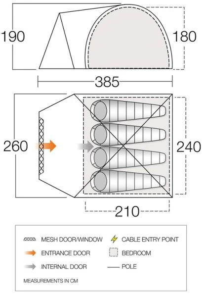 - Waterproof PE Groundsheet – Robust and hardwearing fabric to stand up to the rigours of the most active campers