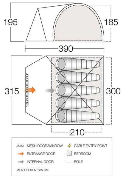 - Waterproof PE Groundsheet – Robust and hardwearing fabric to stand up to the rigours of the most active campers