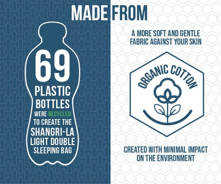 - Organic Polycotton Shell- Created using a mixture of recycled polyester and organic cotton to create a high quality, sustainable polycotton fabric. This shell fabric offers increased comfort, softness and a luxury home from home sleeping experience.